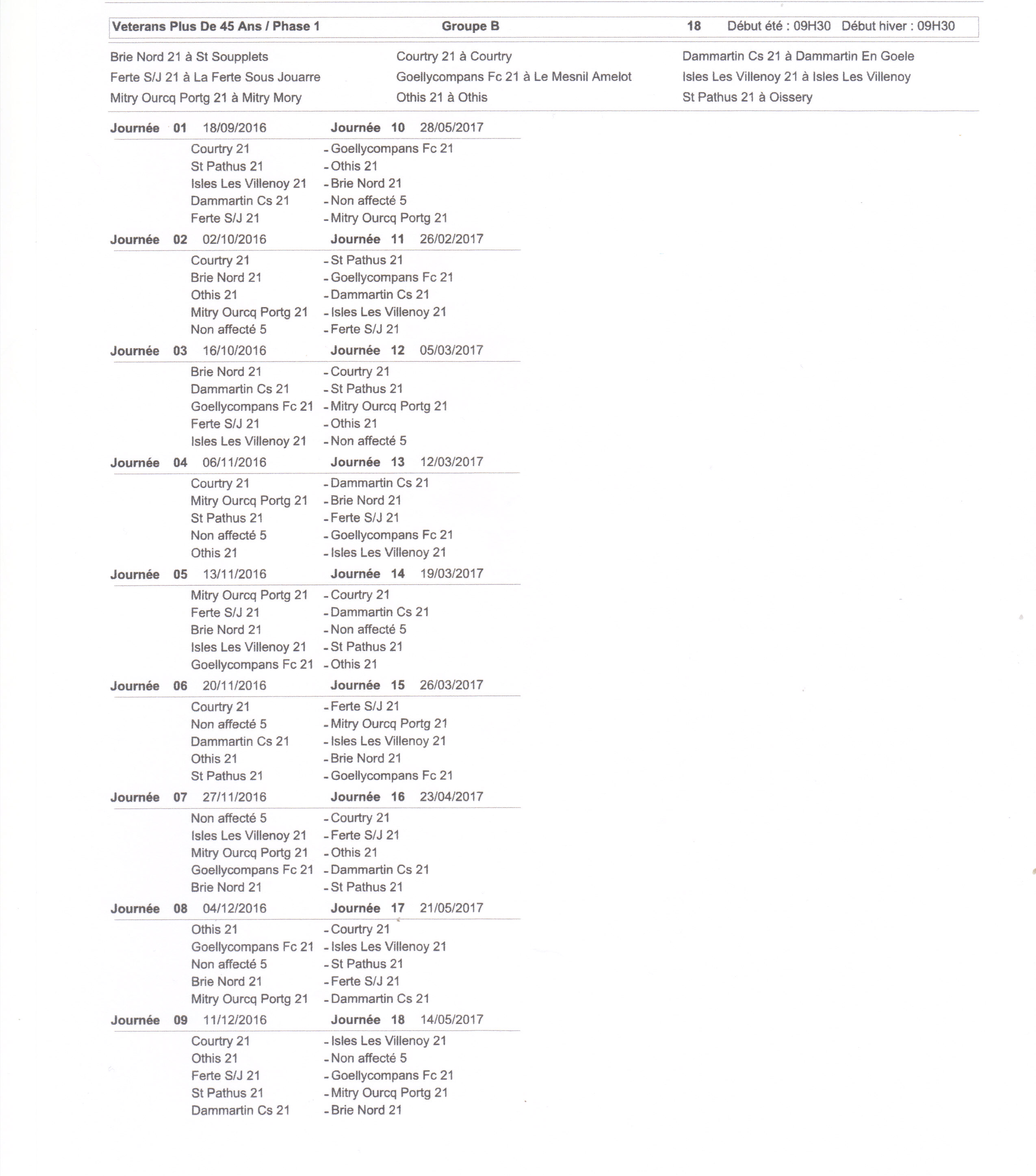 Cliquez sur le lien "Voir le détail" ci-dessous pour accéder au calendrier par journée de la saison 2016 - 2017.